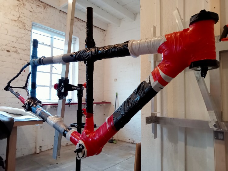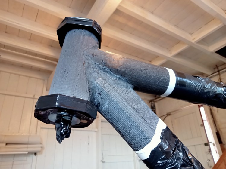 I probably used up Scotland’s supply of electrical tape but it is cheap and versatile and for a beginner, applying a few layers at a time, mistakes can be corrected and things can never go too wrong. It’s a good method to try first to see if working with carbon and making a bike frame is for you, without too much initial outlay.