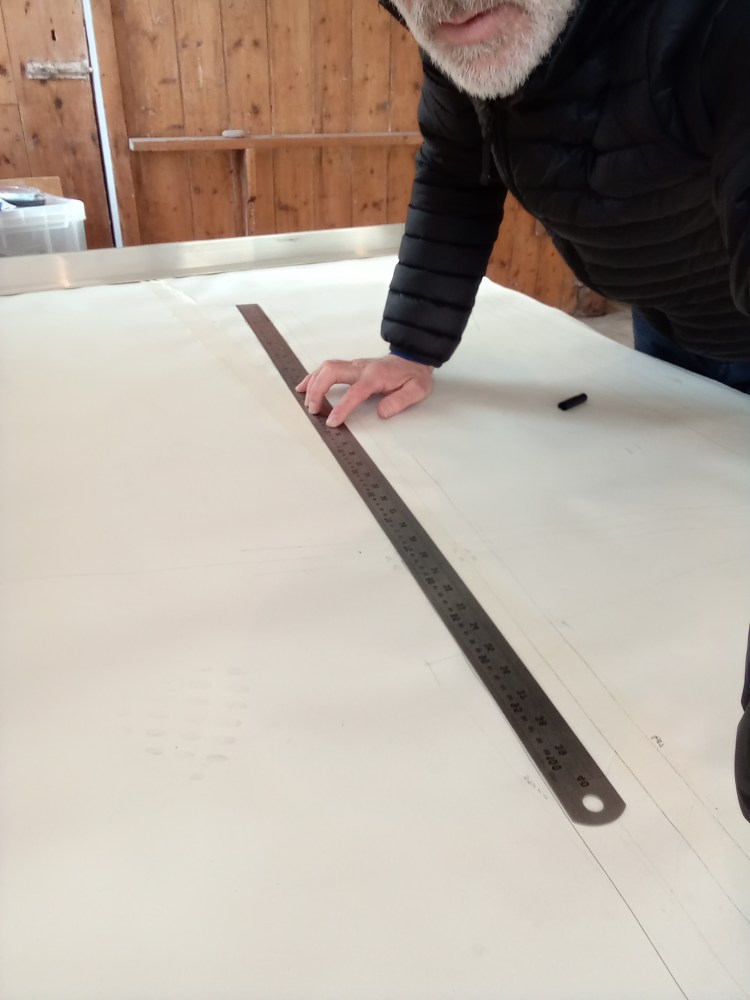 Photo: Setting out frame geometry key measurements first.