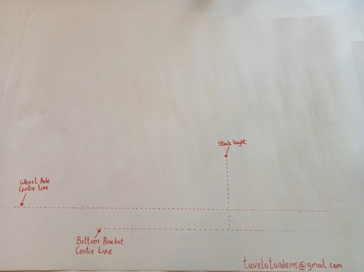 Photo: Drawing a tandem frame with a geometry set, steel rule and lots of coffee.
