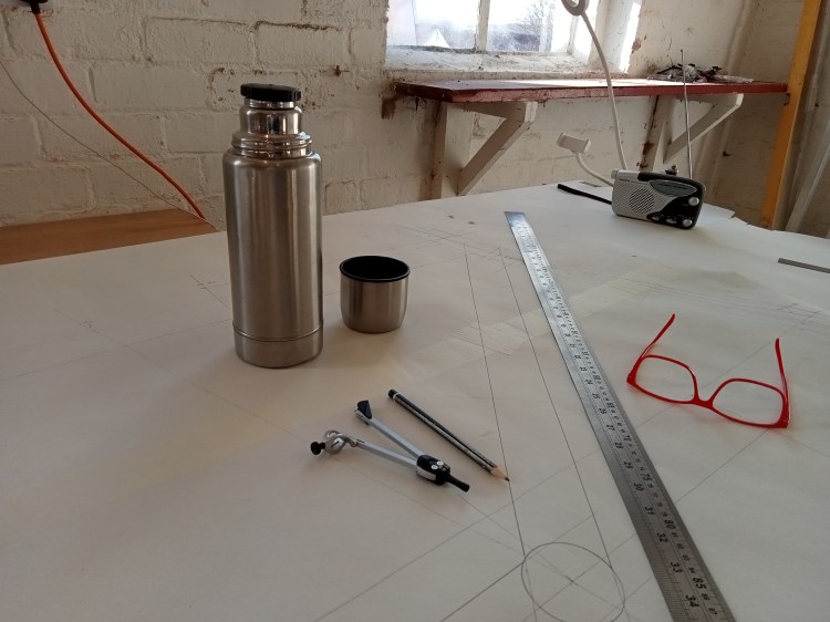 I found some tandem geometry details online and set about drawing a frame 1:1 scale. A big piece of wallpaper was the only paper I could find large enough. I purchased a school geometry set and began drawing. Applying some basic maths, geometry and technical drawing skills after all these years since school was surprisingly satisfying. So my teacher was right, maths was important and I would use it in life after all. I soon found some off the peg carbon tube suppliers but a frame jig was too expensive.