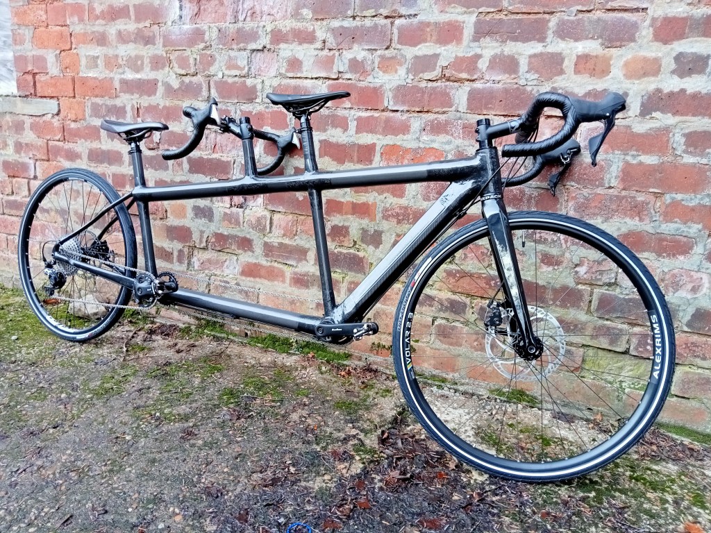 Photo: Home made carbon tandem ready for its first test ride! It had been a lot of hard work to make but great fun to learn new skills.